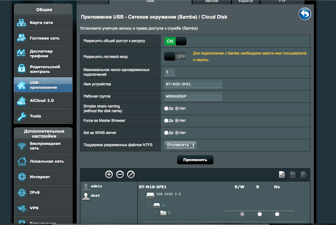 не смог победить timemachine на Asus RT-N16