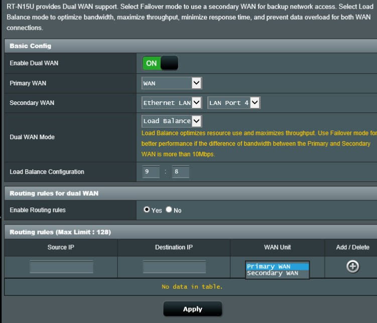 Дело в том, что я использую внутренние ресурсы (форум, торрент, личный кабинет) проводного провайдера (без интернета), соответственно прописанны маршруты. А для интернета использую 3G-модем. Одновременно запустить не получается, работает или WAN или USB. Резервный канал и балансировка трафика не подходит, т.к. через WAN должна работать внутрисеть с определёнными IP-адресами (прописаны в маршрутах роутера), а весь остальной интернет должен идти через модем.