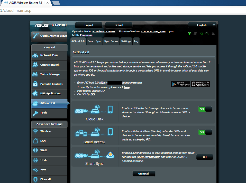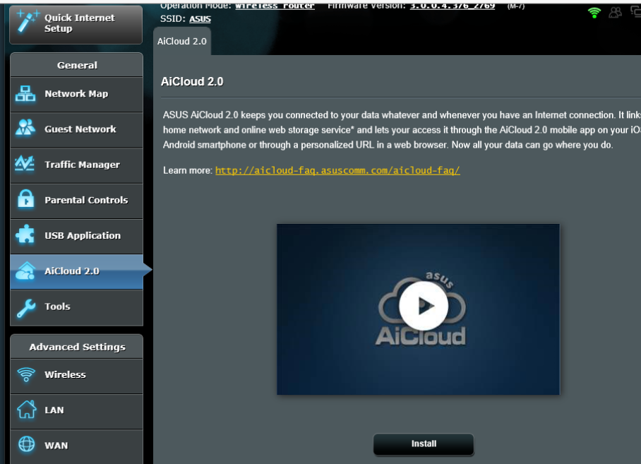 - установка через asusware ASUS AiCloud 2.0 для RT-N10U, RT-N15U и RT-N14UHP с управлением через внешний web kit