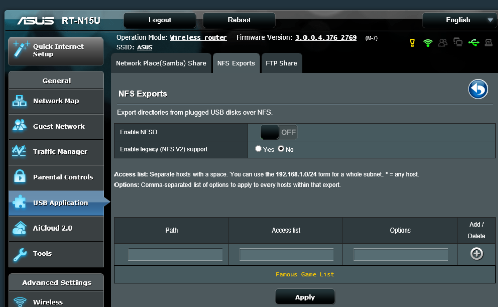 - добавлена поддержка NFS сервера (для моделей RT-N10U, RT-N15U и RT-N14UHP через внешний web kit)